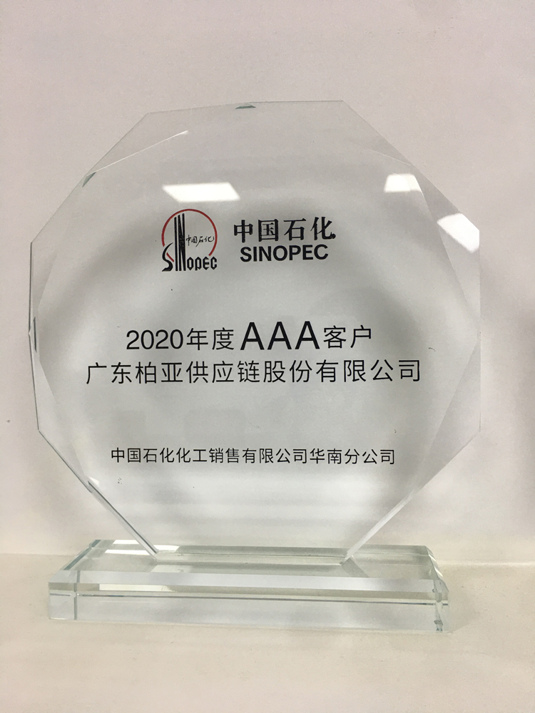 喜讯:柏亚供应链荣获2020中石化AAA荣誉资质!