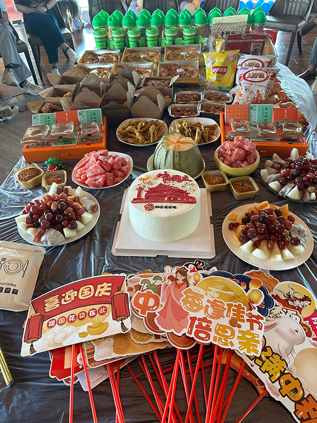 随后,胡总带领大家参加了“庆双节、吃蛋糕”活动,庆祝中华人民共和国74岁生日和中秋传统佳节的到来。茶话会还开展了“你画我猜”、“答非所问”、“数鸭子”等游戏。整个活动气氛融洽,大家积极参与游戏,玩的开心、放松,其乐融融!