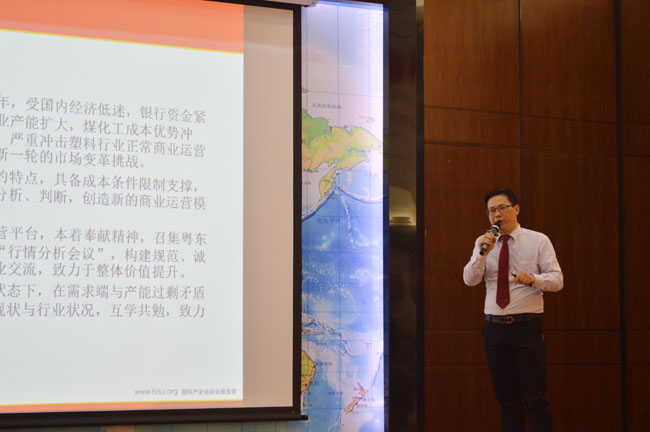 本次会议特邀嘉宾中石化汕头分公司领导邱总分享了他个人的市场见解。他认为,我国大多数现代煤化工企业都是建立在80-100美元/桶的基础上,当前油价持续低位使煤化工丧失成本优势,煤制油、煤制气和煤制烯烃的价格优势不再,目前煤化工的生存非常艰难。而春节后的塑料的价位有利好支撑,就目前价位不要看得太空。