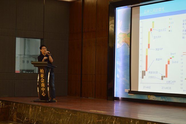 拥有多年从事聚烯烃现货的深圳南海创富基金管理有限公司化工品投资副总监兼交易主管吕杰通过引用大量数据分析聚烯烃现状。他指出,聚烯烃投资巨大,目前开工率和利润都较高,竞争要素集中于资本和行政门槛,垄断程度较高。随着PP在煤化工、PDH的不断投产下,已经从寡头垄断格局走向竞争格局。未来三年全球聚烯烃供需倾向于过剩。2016年PE供需预计由略微过剩向过剩发展。主要原因是国外投产进度引发国内进口量变化。2016国外新增PE产能600万吨,一般20%-25%进口至中国,按最低比例计算,今年约新加120万吨。预计PE进口量将在四五月开始增加。目前线性阶段偏弱,PP平衡,进入5月预期转弱。PE产能第2季度预计逐步恢复,下半年由于检修力度远低于上半年,产量压力增大。